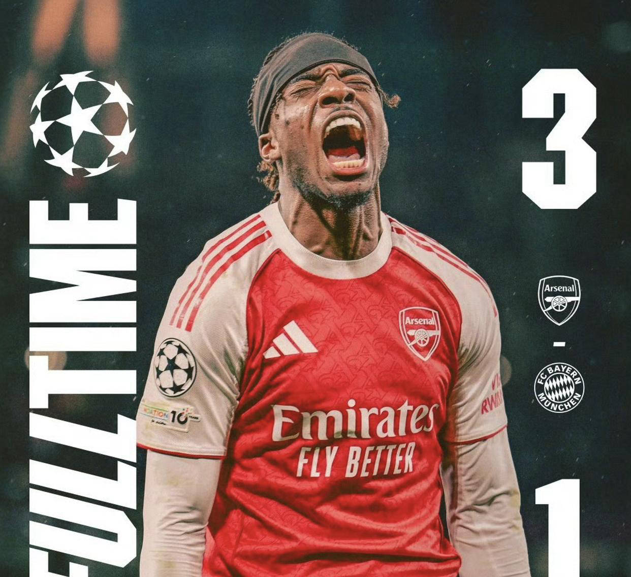 本场对拜仁影响最大的无疑是迪亚斯的缺阵,这位此前被利物浦放弃的超级边锋,自加盟拜仁以来已18次出场打入11球并贡献5次助攻,他的停赛让拜仁攻击力大打折扣。比赛第22分钟,阿森纳利用角球战术再次奏效,由萨卡助攻廷贝尔头球首开纪录。随后的第32分钟,拜仁由格纳布里送出助攻,年仅17岁的卡尔精准破门,才扳平比分,这也是阿森纳本赛季欧冠中首次失球。进入下半场,第69分钟,替补出场的卡拉菲奥里送出精准传中,马杜埃凯抢点得手,阿森纳再度领先。临近结束时,拜仁门将诺伊尔失误,马丁内利轻松推射空门,锁定3-1胜局。此役过后,拜仁四连胜的势头被终结,阿森纳则以五战全胜继续巩固英超与欧冠双料榜首的位置。